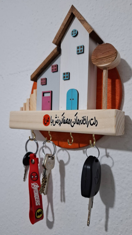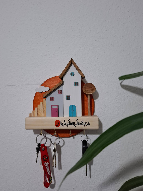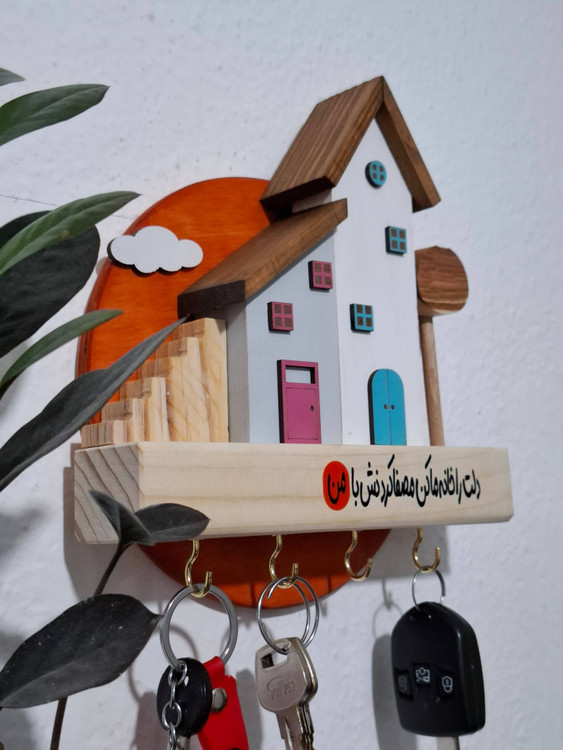 این جاکلیدی دستساز، با طراحی مینیمال و الهام گرفته از خانههای کوچک و دوستداشتنی، نه تنها کلیدهای شما را به صورت منظم و در دسترس نگهداری میکند، بلکه به عنوان یک عنصر دکوری جذاب، به دیوار منزل شما روح و گرما میبخشد.